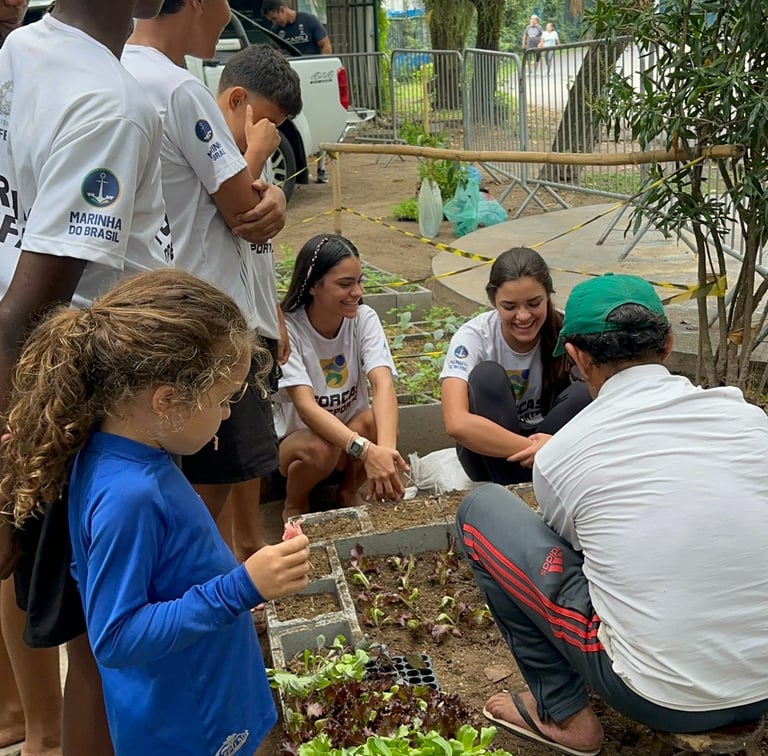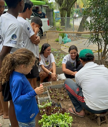 A atividade da horta da sede do Instituto com as crianças do PROFESP tem proporcionado aprendizado sobre alimentação saudável e a origem dos alimentos, além de fortalecer o cuidado e a responsabilidade.